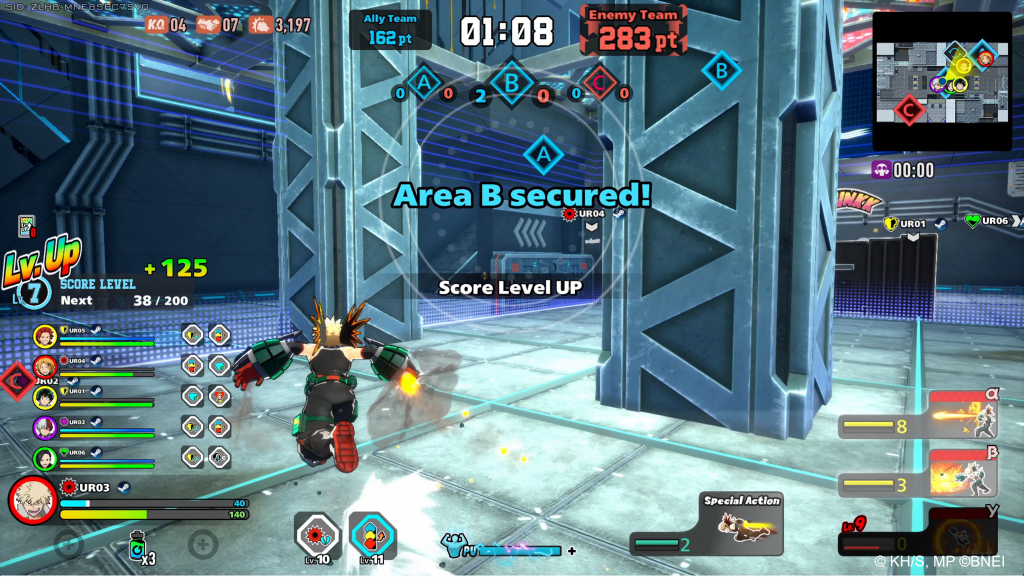 Capture and hold zones to earn points for your team. The more zones you control simultaneously, the more points you’ll earn! The team with the most points at the end of the match wins. Use your characters’ Quirk strategically to outscore the opposing team!